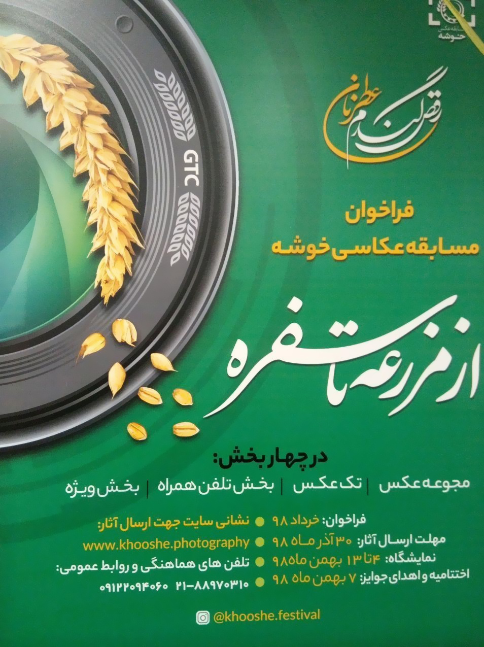 آیین افتتاحیه و رونمایی از پوستر فراخوان سومین دوره مسابقه عکاسی خوشه با عنوان «از مزرعه تا سفره» صبح امروز دوشنبه 20 خرداد برگزار شد.